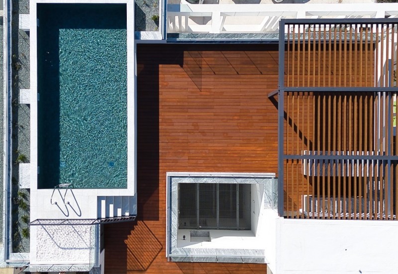 Residents can enjoy a breathtaking rooftop swimming pool and lounge area with panoramic sea views, as well as an on site gym.