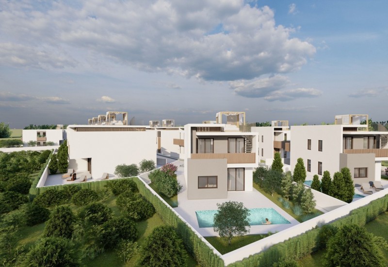 Located in the growing residential area of Tremithousa, this modern three-bedroom villa combines clean architectural lines with practical design and outdoor flexibility. Just a short drive from the center of Paphos, the home is part of a boutique low-rise development on Trimithias Avenue, offering a peaceful neighborhood setting with easy access to amenities.