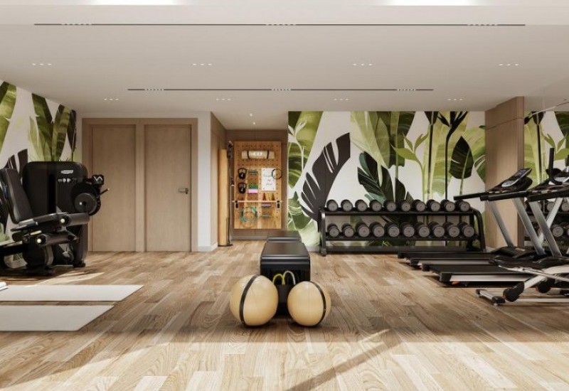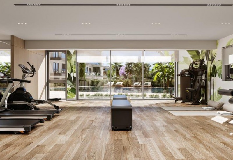 The development is enriched with premium lifestyle amenities, including a large communal swimming pool surrounded by lush landscaped gardens—perfect for relaxation under the Cyprus sun. A fully equipped gym overlooking the pool provides a motivating space for maintaining an active lifestyle.